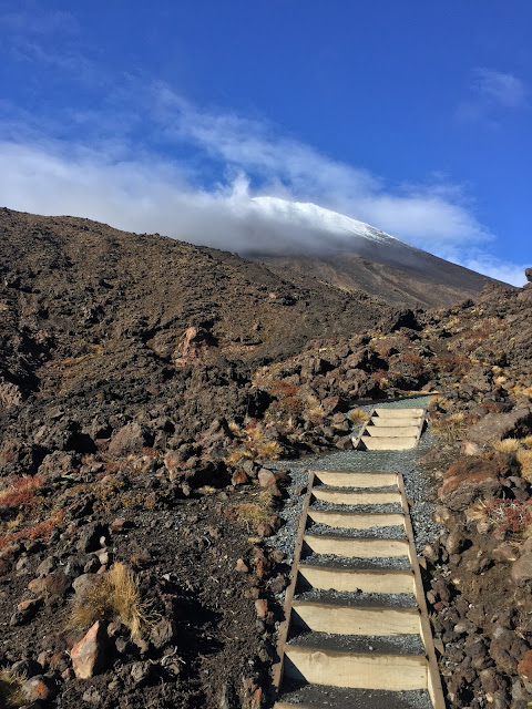 El vuelo interno de Auckland a Queenstown (isla Sur) voló sobre el mar paralelo a la costa Este de ambas islas, espectacular y donde pude fotografiar desde el avión el nevado Monte Ngauruhoe, en pleno "Mordor", en el Parque Nacional del Tongariro, y que más tarde visitaríamos tan de cerca emocionados…